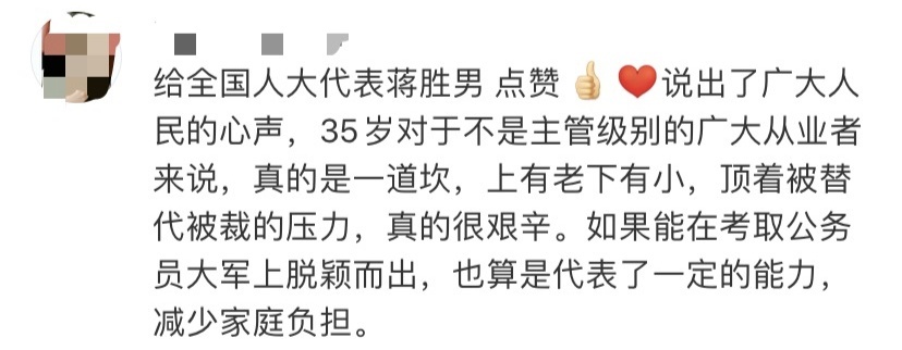 不少网友表示,35岁更加稳重成熟,更能胜任工作。