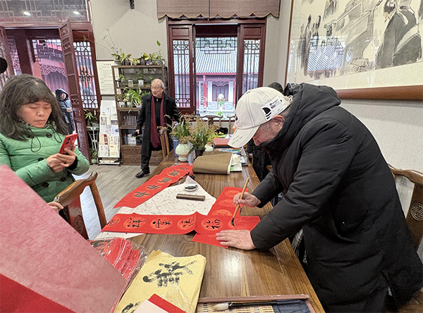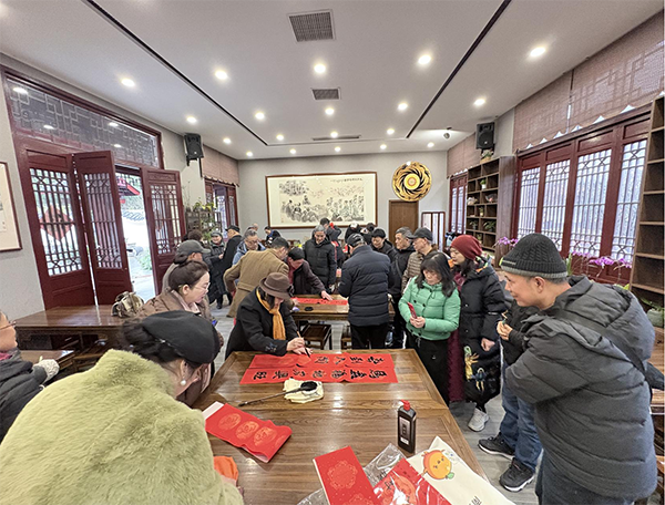 书法家们现场挥毫泼墨,为市民书写寓意吉祥的春联。