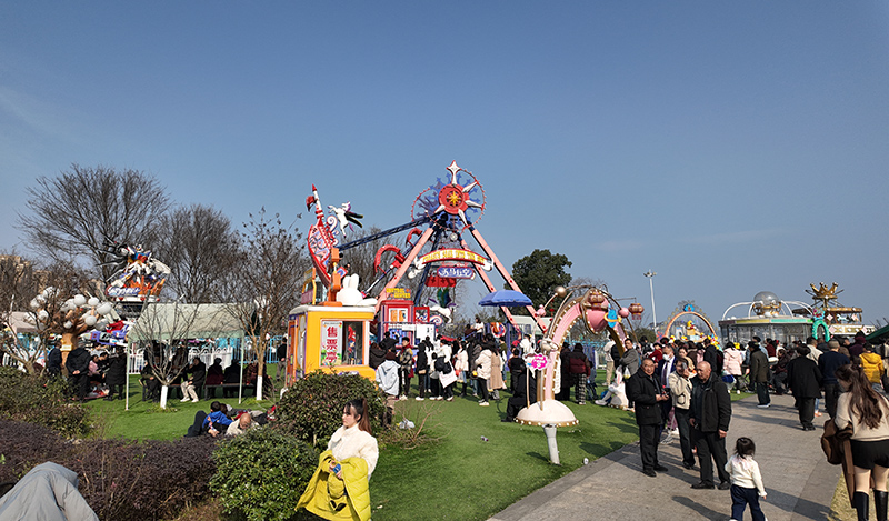 除了静态休闲,动态的游乐项目同样人气爆棚。在烧烤区内,炊烟袅袅,香气扑鼻,亲朋好友们围坐烤炉边,亲手制作美食,体验舌尖上的年味 。不远处的儿童乐园里,旋转木马、碰碰车等设施前均排起了长龙,孩子们的欢笑声此起彼伏 。