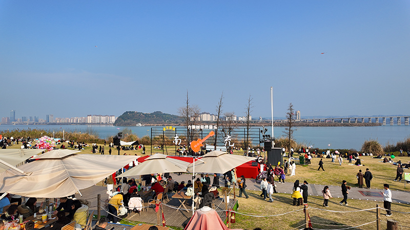 当日下午2时许,笔者在黄金江岸看到,通往景区的公路两侧车辆排起长龙,交警车流中忙碌指挥着交通,秩序井然。不少市民选择举家出游,在暖阳下尽享春节假期的惬意。在超大面积的草坪区域,“晒太阳”成为新春的首选休闲方式。市民们或铺上野餐垫围炉煮茶,或支起帐篷闭目养神,孩子们则在草地上追逐嬉戏,处处洋溢着团圆的喜悦 。