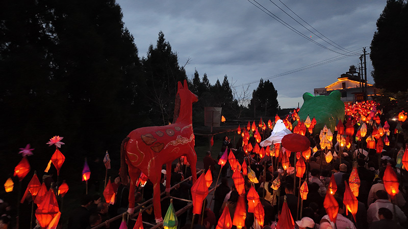 下午五时许,民生观察在三会镇看到,家家户户门前都已插上扎好的蛴蟆灯。与往年相比,今年恰逢丙午马年,不少灯盏融入了骏马剪纸元素,寓意“马到成功”。一位年逾七旬的老人正在为孙辈讲述“送蛴蟆”的由来:“以前医疗条件不好,人们把病痛看作蛴蟆作怪,送走了它,就送走了灾。”从社会学视角观察,这种看似朴素的迷信行为,实则是农耕时代民众应对未知风险的一种集体心理疗愈机制。当夜幕降临,数万人手持灯火齐声高唱“蛴蟆公,蛴蟆婆,把你送下河”时,那种排山倒海的声浪与光芒,本身就构成了一种强大的心理暗示:所有的困厄与不顺,都将在这一场集体的呐喊中被驱逐出境。